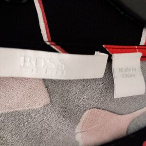 BOSS by Hugo Boss Ginkgo Leaf Print Blouse Black Red Top Size L MSRP $299