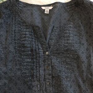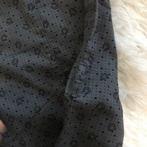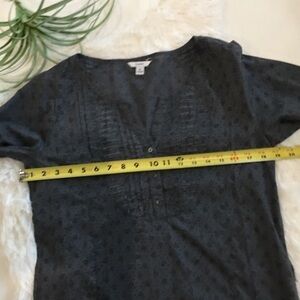 Bossini Gray tunic shirt with horseshoes all over. V-neck with partial button down. Excellent condition. Has belt loops. (Belt not included). Great for horse lovers!! Approximate measurements on photos. Size medium