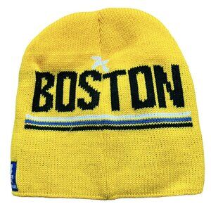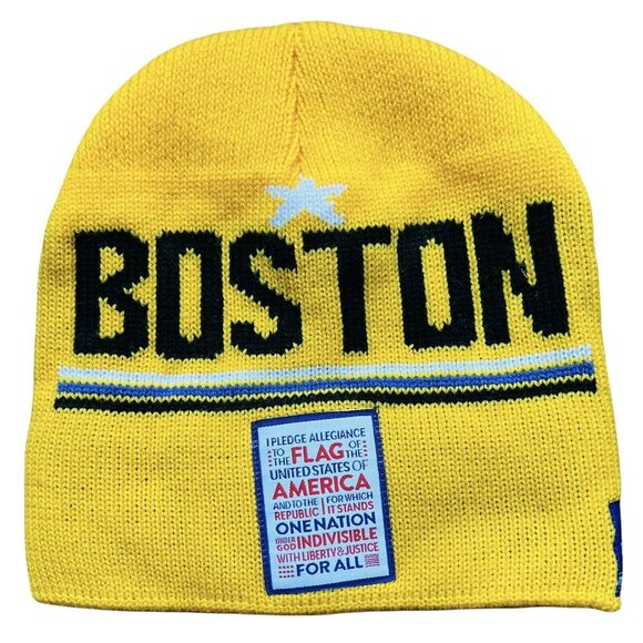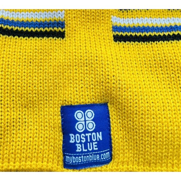 BOSTON BLUE Beanie Hat Pledge Of Allegiance Patch Bruins Colors Yellow Lined