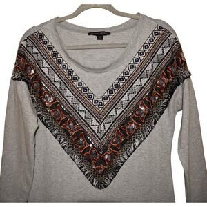 BOSTON PROPER $139 Gray Embellished Sequin Fringe Tunic Shift Dress Boho Small