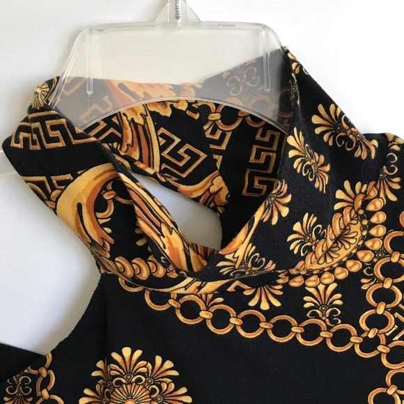 BOSTON PROPER Baroque Floral Fleur-De-Lis Top Black Gold Women’s Size Large
