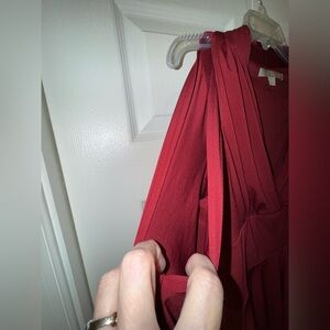 BOSTON PROPER Burgundy V-Neck Cold Shoulder Fit Fare Peplum Blouse Size M GUC