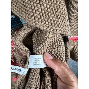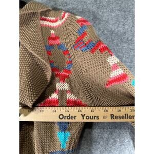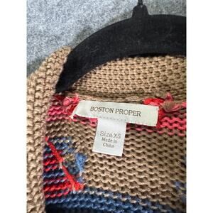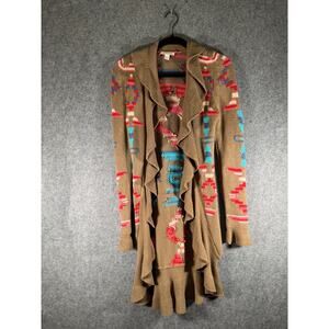 BOSTON PROPER Cardigan XS Aztec Ruffle Open Front Longline Southwestern Sweater