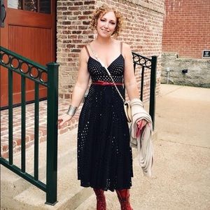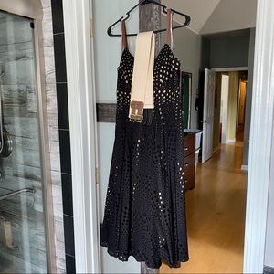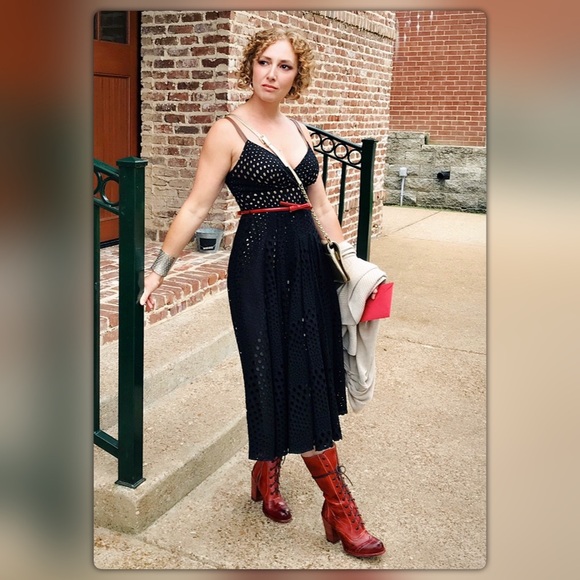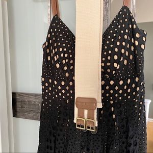 This dress is super hot. Boston Proper classic. Black lace, nude lining, flattering fit. I will include the double buckle nude canvas belt it came with. Red belt or any accessories not included. Worn and washed twice to wedding and rooftop party. Excellent condition. Currently selling for $179.50 and no longer available in black on website.