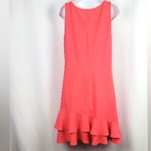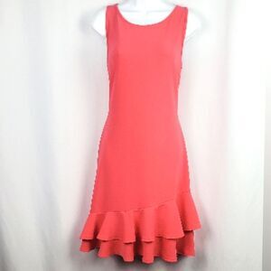 Gorgeous Boston Proper coral sleeveless dress with two tiered ruffled hem. Pullover style- 95% nylon 5% spandex. In excellent condition.
