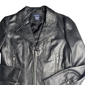 BOSTON PROPER | Genuine Leather Moto Jacket | Black | Size 14