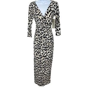 BOSTON PROPER LEOPARD PRINT SURPLICE WRAP MAXI DRESS NWT