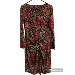 BOSTON PROPER Leopard Rose Print Ruched Front Dress size 12