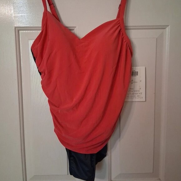 BOSTON PROPER Magic Suit SZ 16 One Piece Swim Dark Pink (Red) & Dark Gray NWT