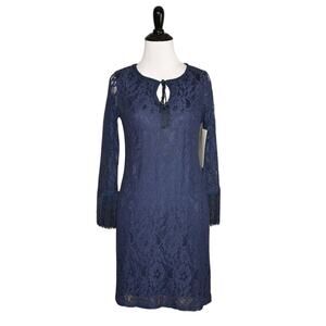 BOSTON PROPER NEW $128 Navy French Lace Tassel Fringe Dress Size 0