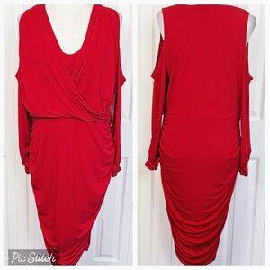 BOSTON PROPER Red Fit & Flare Sleeveless V-Neck Flowy Midi / Knee Length XS NWT