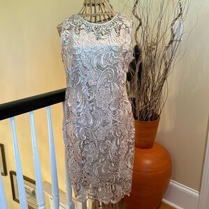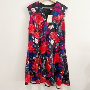 BOSTON PROPER Red Fit & Flare Sleeveless Dress – V-Neck – Flowy Midi / Knee Length