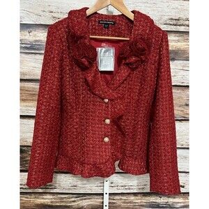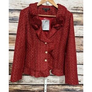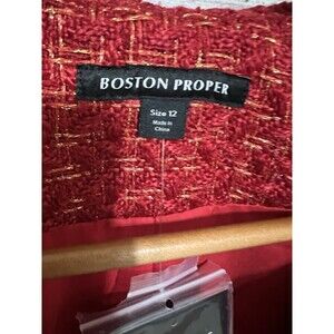 BOSTON PROPER Red TWEED BLAZER JACKET Size 12 New Ruffle Roses. 20.5 armpit to armpit and 24 long lying flat. Unworn. Gorgeous piece. I ship on the same or next day from a smoke free home. I make every effort to describe items honestly and price them fairly. Feel free to make an offer or ask any questions. Im happy to help.