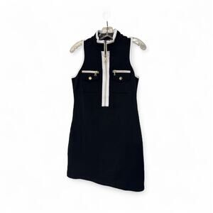 BOSTON PROPER Sleeveless BLACK/WHITE Chic Zip Dress SZ S