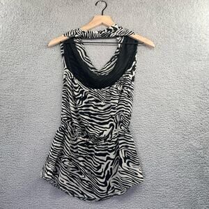 BOSTON PROPER Tank Top 6 Zebra Animal Print Draped Y2K Glam Mobwife Feminine