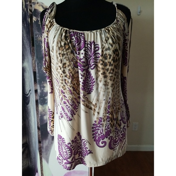 BOSTON PROPER Women's Paisley Cold Shoulder Boho Top Multi Size S NWT