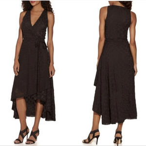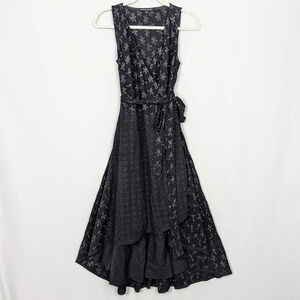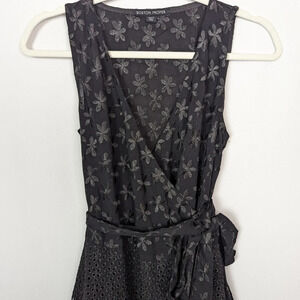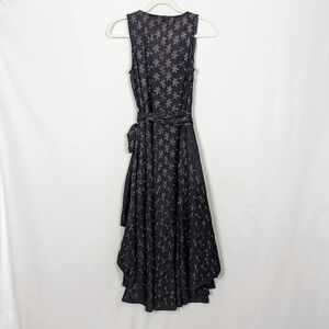 BOSTON PROPER sz. XS Embrodered Floral Eyelet Wrap Belted Midi Dress Sleeveless