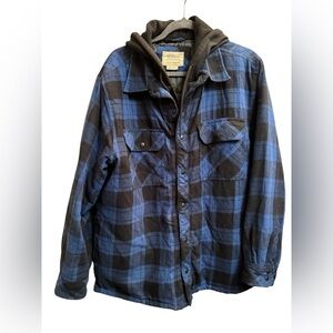 BOSTON TRADERS Men’s LG Blue Blk Quilted Lining Snap Zip Jacket Coat Shacket EUC