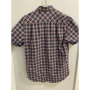 BOSTON TRADERS MENS PLAID BUTTON DOWN SIZE SMALL. RED WHITE & BLUE PLAID. SHIRT IS IN PERFECT CONDITION.