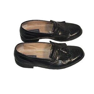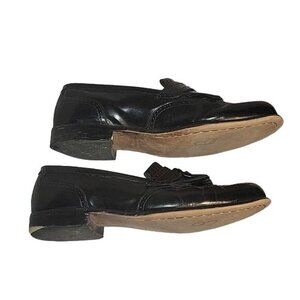 Elevate your style with these sleek Bostonian slip-on loafers. The solid black leather upper and retro oxford design make them perfect for work or academia. The slip-on closure ensures easy wear while the leather lining and insole provide comfort throughout the day. These shoes are size 10.5 and have a leather outsole for durability. Please note that there are some minor flaws in the shoes, which can be seen in the pictures. These do not affect the overall quality and style of the shoes. Add a touch of sophistication to your wardrobe with these Bostonian slip-on loafers.