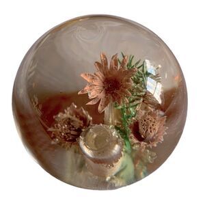 BOTANICAL Garden Vintage Lucite Paperweight 1.5”