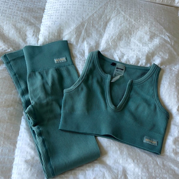 Mint/green BO+TEE active set size XS. Video of me dancing with the pants on, haha.