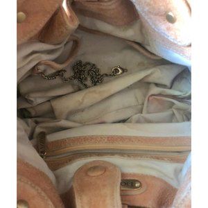 BOTKIER Camel Tan Metallic Suede Leather Crescent Hobo Boho Handbag Bag Purse