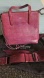custom bag with beautiful stitching. Three interior pockets, one zippered. Beautiful Malbec color. Choice of straps lets you dress up or down the bag depending upon your use.