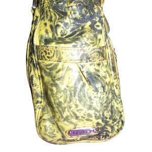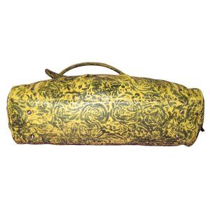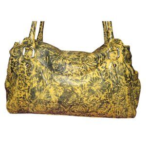 This vibrant satchel features a yellow-green floral print on premium Indonesian lamb leather. Perfect for adding a touch of elegance to any outfit, it comes with a tassel detail for added flair. Definitely big enough to be a weekender. The flap that folds over unzips to become another giant compartment!