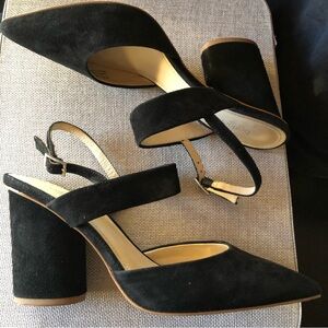 BOTKIER New York Halle black suede slingback block round heel sandal pump 6.5