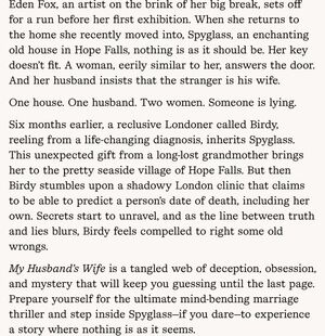 Book of the Month Club edition of My Husband's Wife by Alice Feeney. Early release. Mystery/ Thriller genres. EUC, great read!