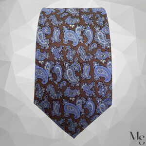 BOTTEGA DE SARTO Brown Blue Paisley Silk Tie Hand Made W: 3" EX COND