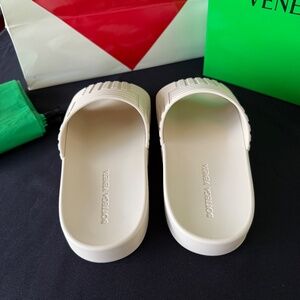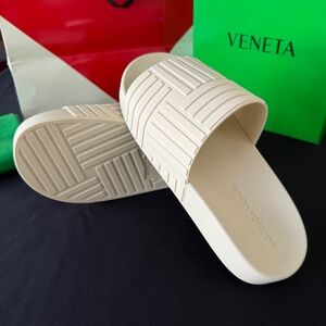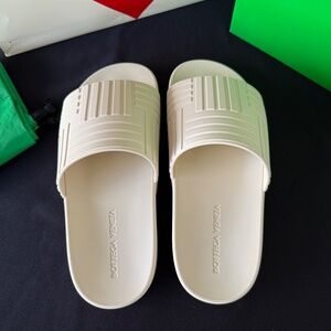 BOTTEGA VENETA 690105 Men's Pool Slide Sandals Sea Salt White Rubber, 39 (US 7)