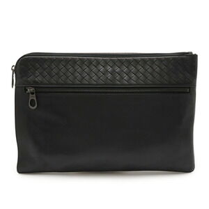 BOTTEGA VENETA Black Leather Intrecciato Clutch Bag