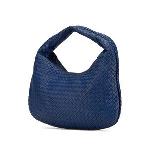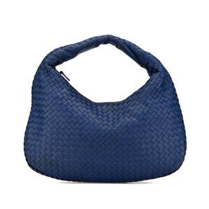 BOTTEGA VENETA Blue Leather Intrecciato Shoulder Bag