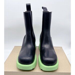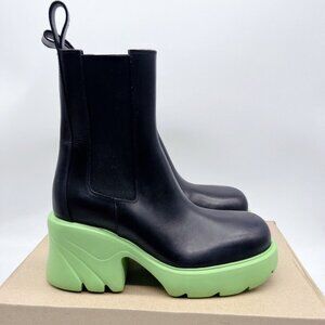 BOTTEGA VENETA Flash Chelsea Boots Platform Black Green Leather US 7.5 EU 37.5