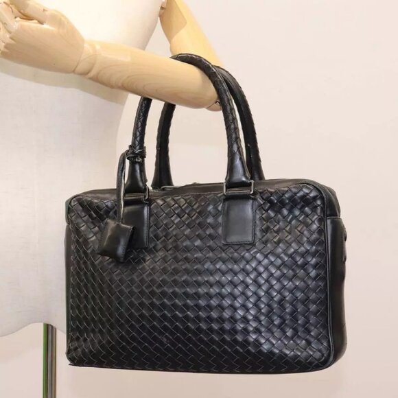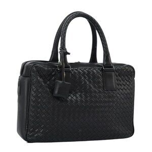 BOTTEGA VENETA INTRECCIATO Hand Bag Leather Black Auth