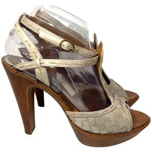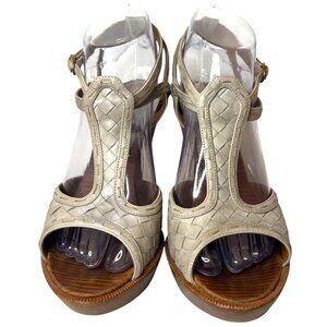 BOTTEGA VENETA Intrecciato Leather Ankle Strap Platform Sandals 38 8 Woven Gray