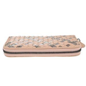 BOTTEGA VENETA Intrecciato Zip Around Long Wallet Embossing Leather Pink 33RF621