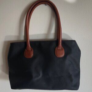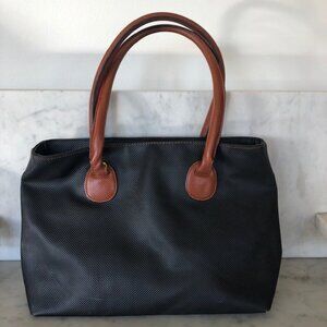 BOTTEGA VENETA Marco Polo Italian Black Pebbled Brown Accent Satchel …