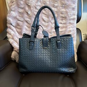 BOTTEGA VENETA Nappa Intrecciato Medium Roma Tote Dark Blue