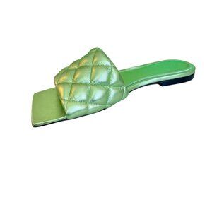 BOTTEGA VENETA Quilted Leather Padded Flat Slide Sandals - Reflection Pistachio