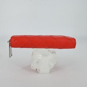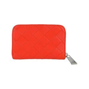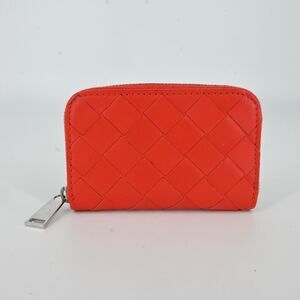 BOTTEGA VENETA Red Orange Intrecciato Zip Coin Purse