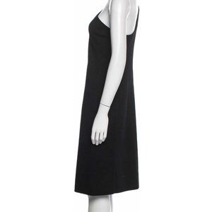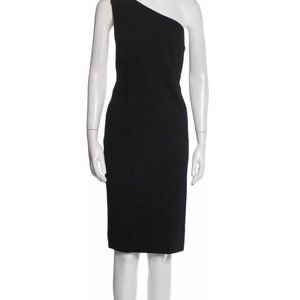 The fabric has a nice weight and overall the dress is in excellent condition. This dark brown knee-length dress is composed of a compact knit and one-shoulder neckline is draped across the back with the aforementioned low-cut, curved cut-out detail. I wore it once and it's freshly dry cleaned. The designer label has come unstitched on the upper left hand corner but can easily be restitched.