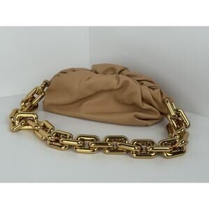 BOTTEGA VENETA The Chain Pouch Beige Leather Shoulder Bag