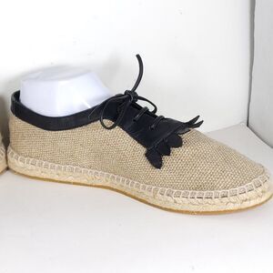 BOTTEGA VENETA Women's EU39 US8,5 Beige Woven Canvas Leather fringe lace up Espadrilles Loafers.