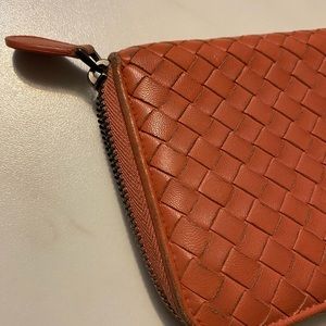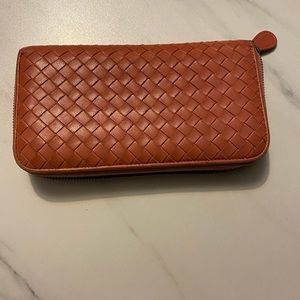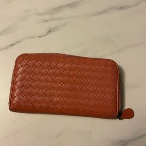 Used Good Condition. Authentic Zip-around continental wallet in Intrecciato leather, many card slots, two bill compartments, two additional compartments and a zipped coin pocket. 100% Calfskin. Made in Italy. Minor wear. Please see pictures for exact details.