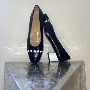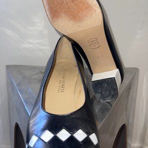 BOTTEGA VENETA black and white checker diamond leather pumps