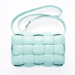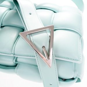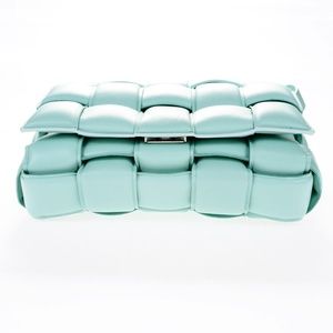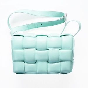 Bottega Veneta leather padded cassette cross body shoulder bag. Color - Topazio blue. Like new - Never worn. BV dust bag and tags included.
