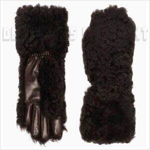 Brand New Authentic BOTTEGA VENETA brown TEDDY Shearling and Lambskin leather cashmere lined gloves